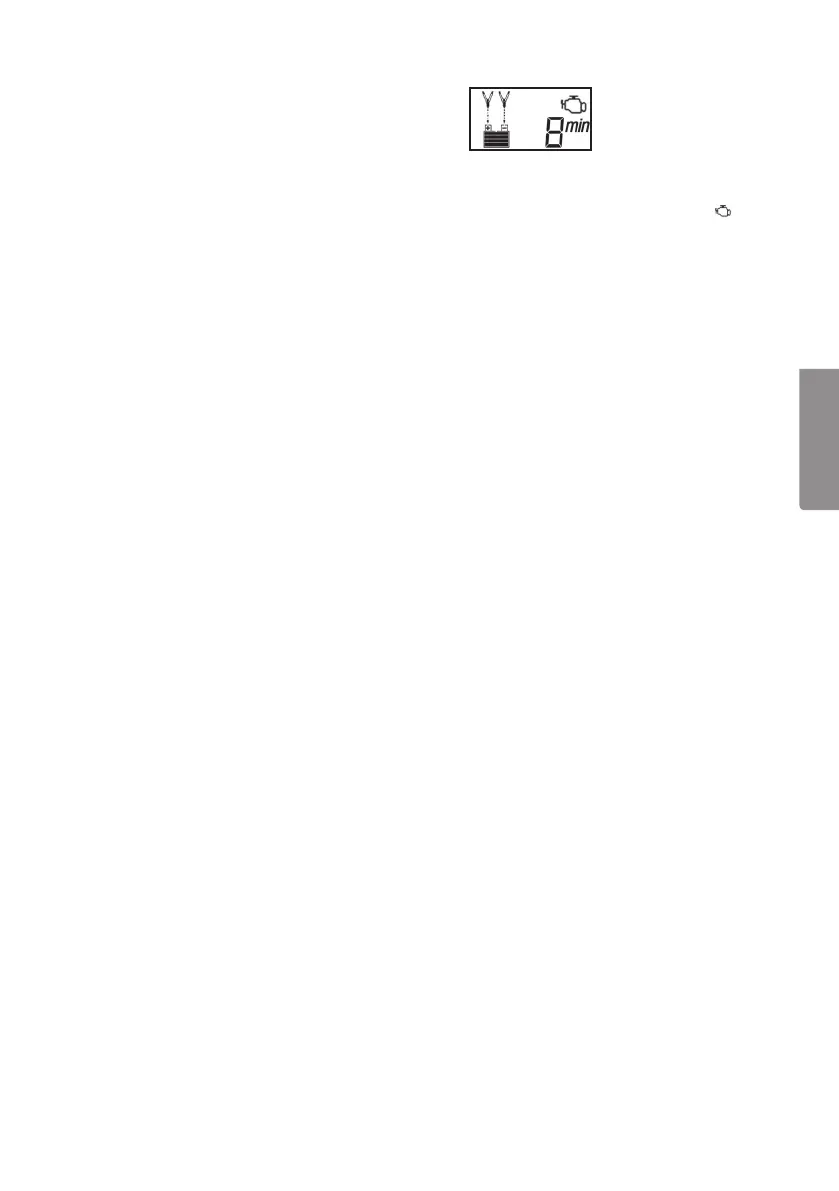 I displayet vises nedtellingen av ladingen fra 8 minutter. Nivåene på batteriikonet går