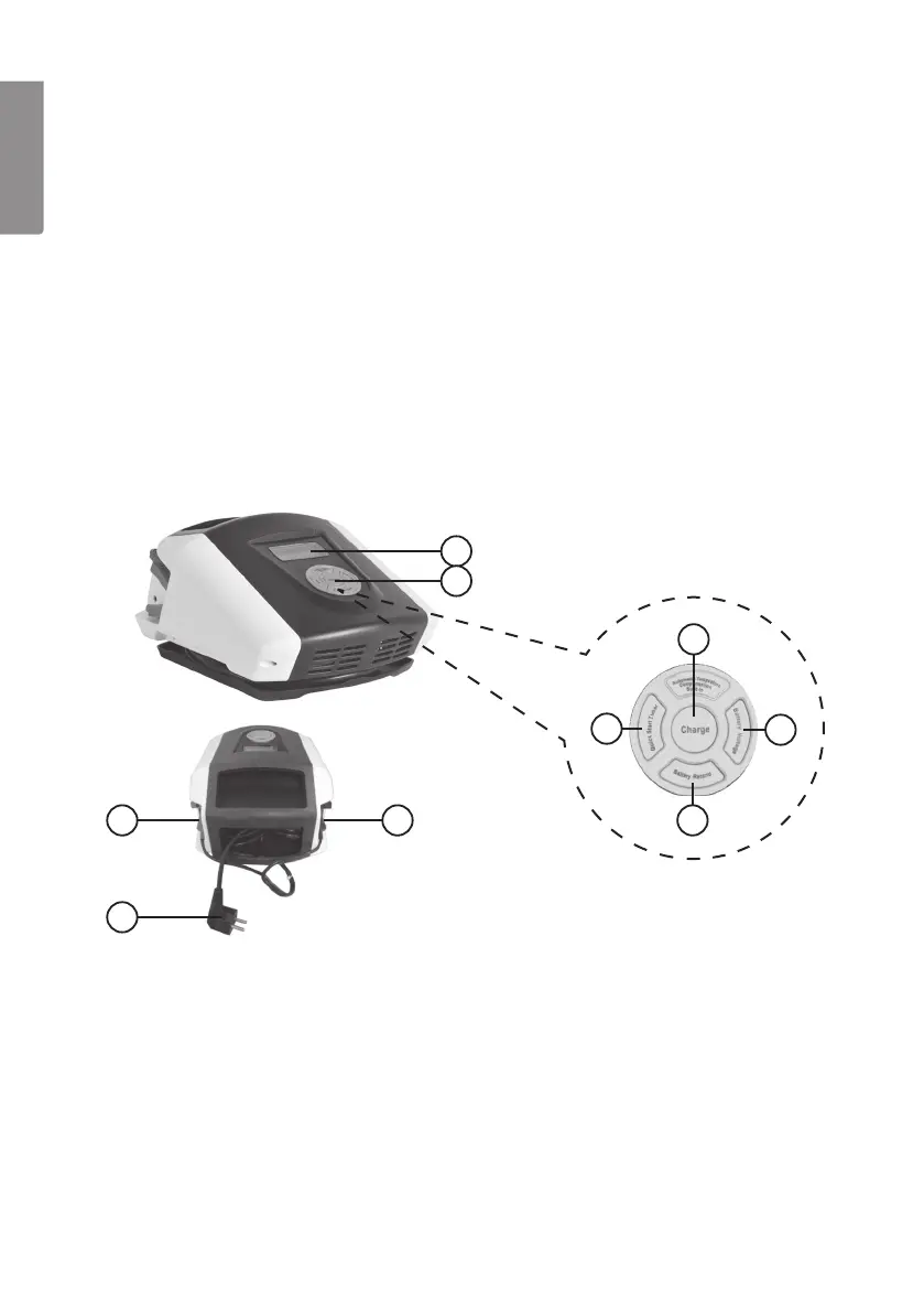 charge mode. Clear, illuminated digital display. For large 12 V batteries (car batteries)