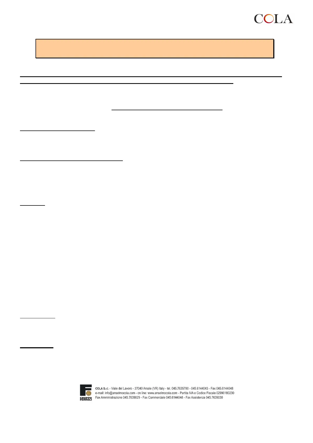 Le condizioni di Garanzia convenzionale sopraelencate sono le uniche offerte dalla COLA Srl