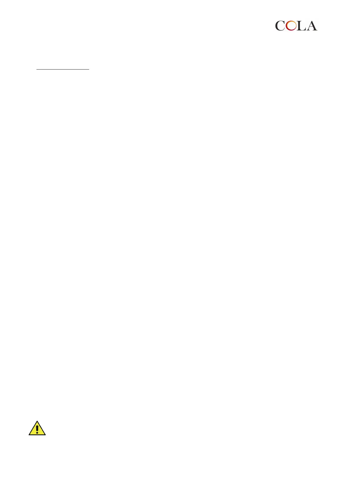 Der Hersteller Cola s.r.l. haftet nicht für Störungen, Schäden oder Unfälle, die auf die Missachtung bzw.