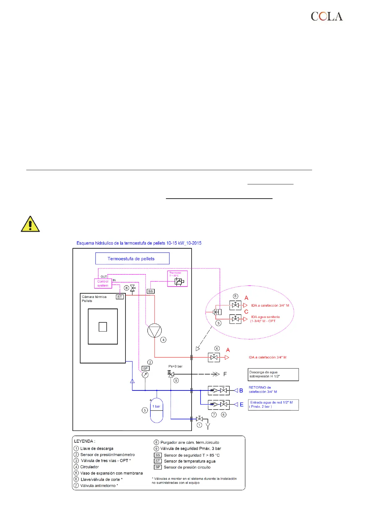 para el funcionamiento correcto. Según las normas y la buena práctica de instalación, entre la estufa y el sistema