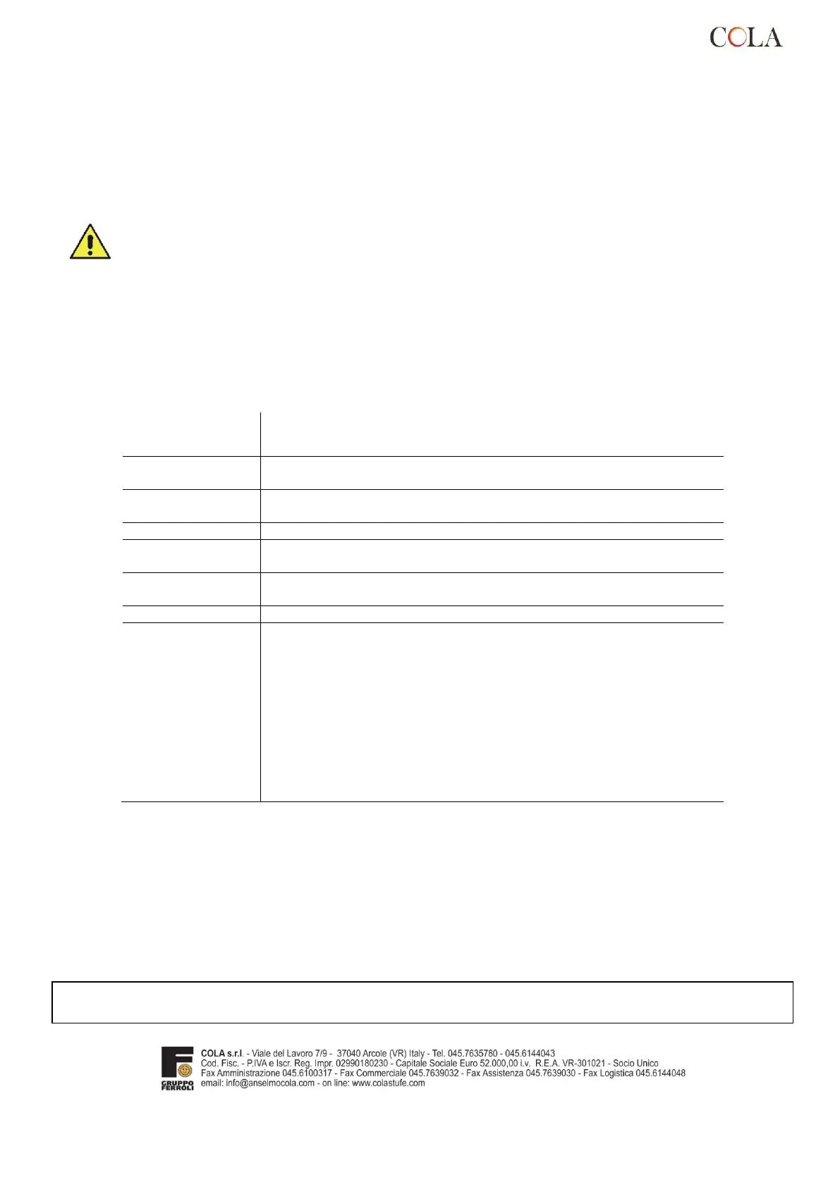 personas y al medioambiente. En dichas condiciones, Cola S.r.l. no asume ninguna