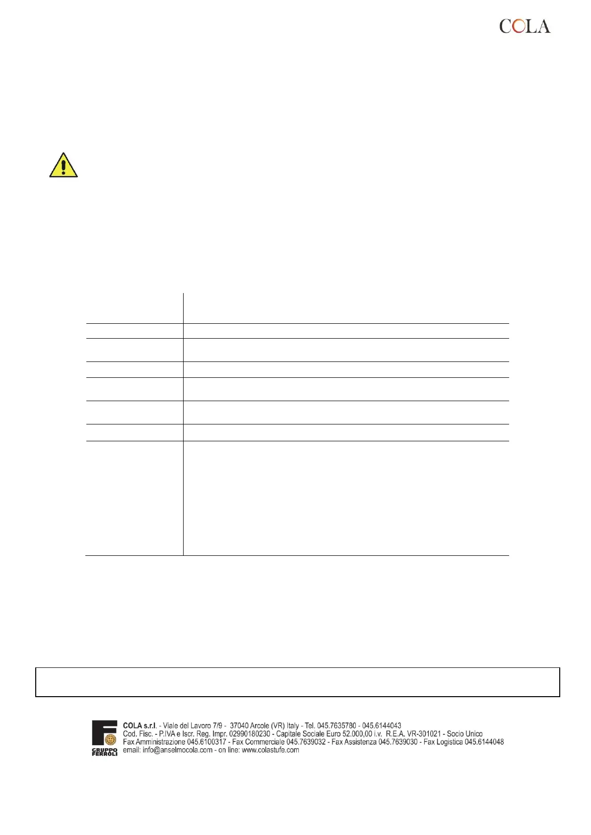 units and the environment. In this case, Cola s.r.l. declines any liability.