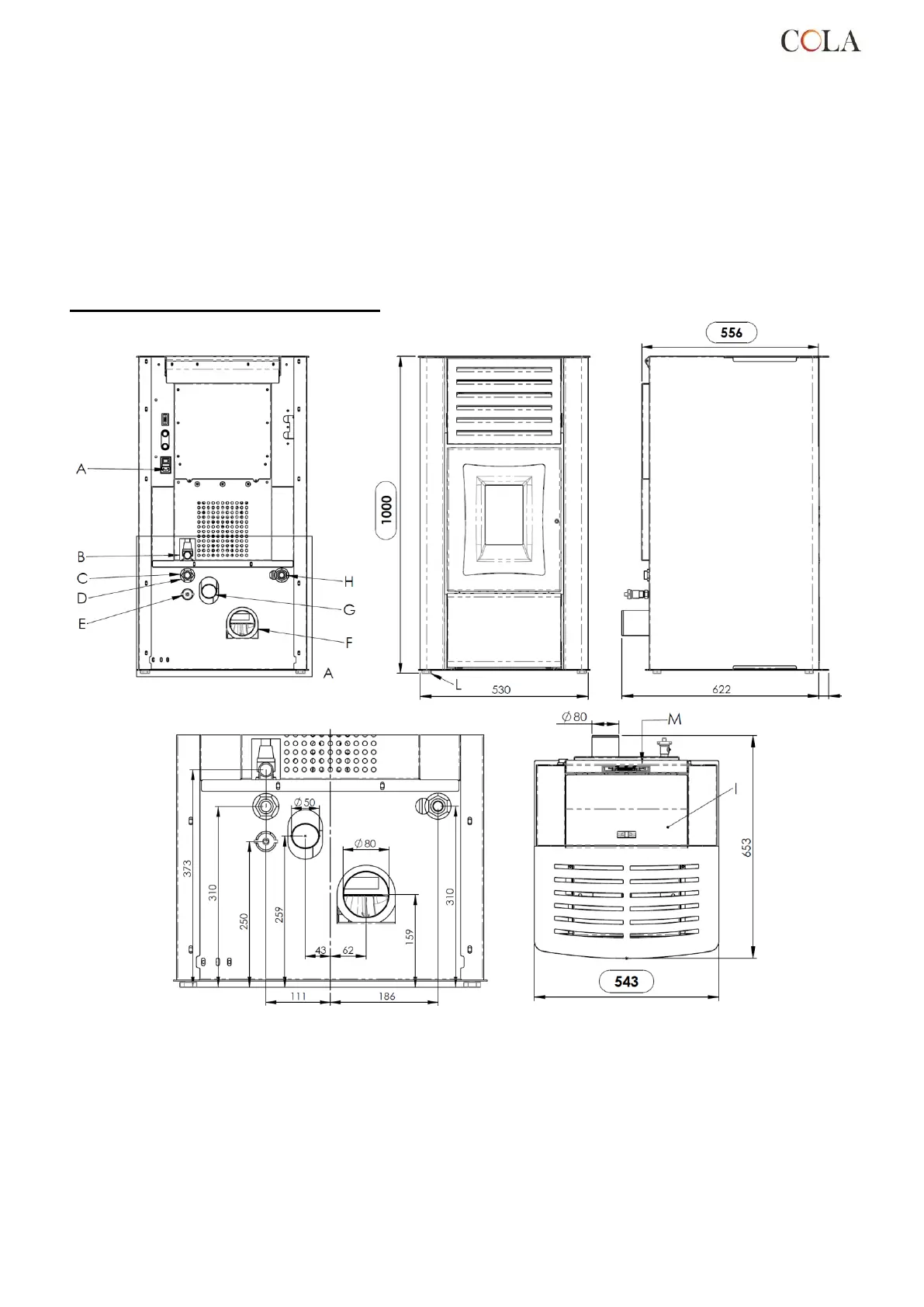 F - Raccordement tuyau d'évacuation des fumées, Ø 80 mm