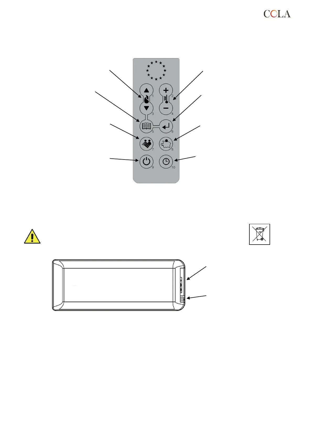 - Conserver la télécommande à l'écart de toute source de chaleur directe ou de l'eau.
