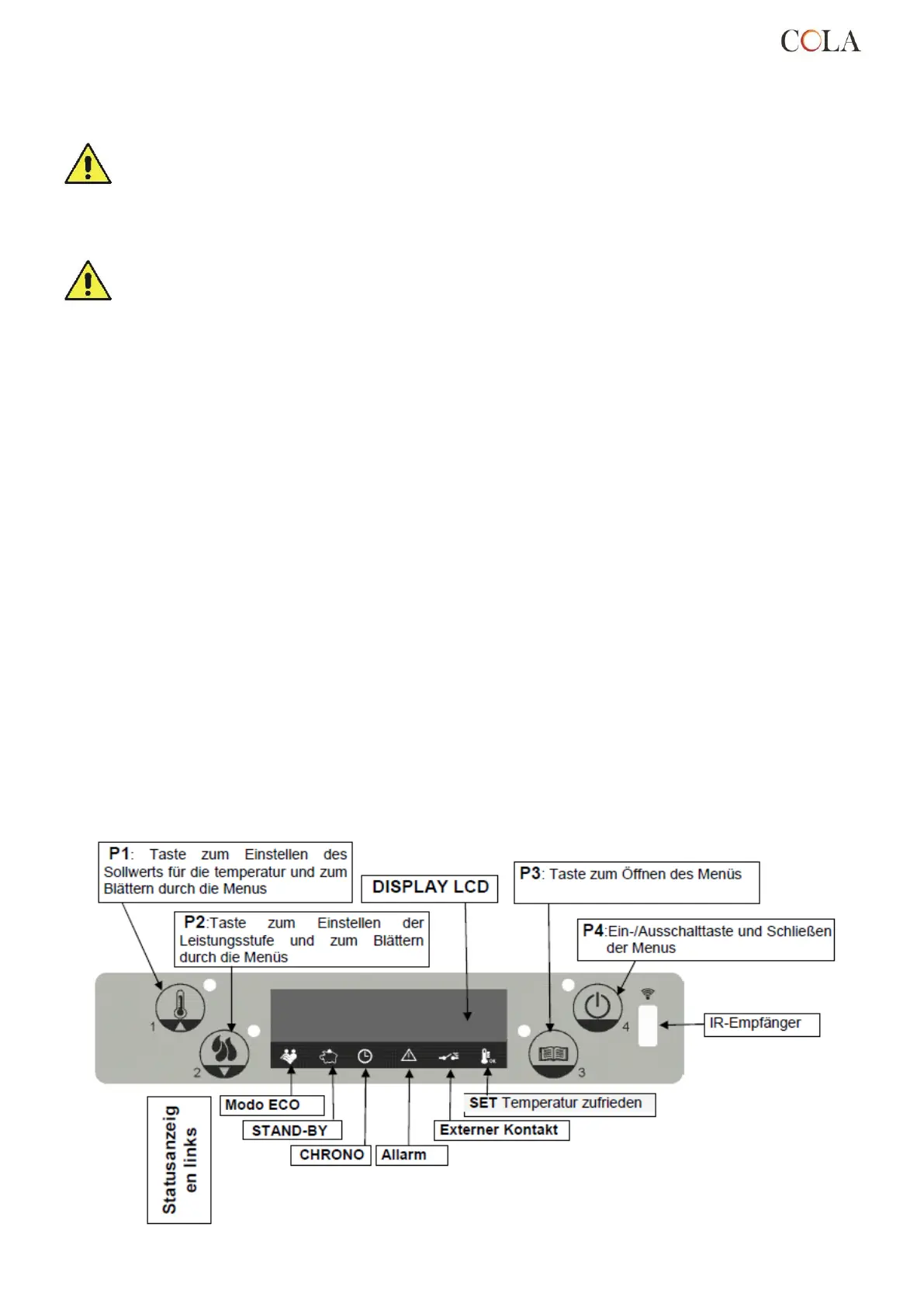 Keinen anderen Brennstoff als Holzpellets, die die Vorschriften erfüllen, in den Ofen einführen.