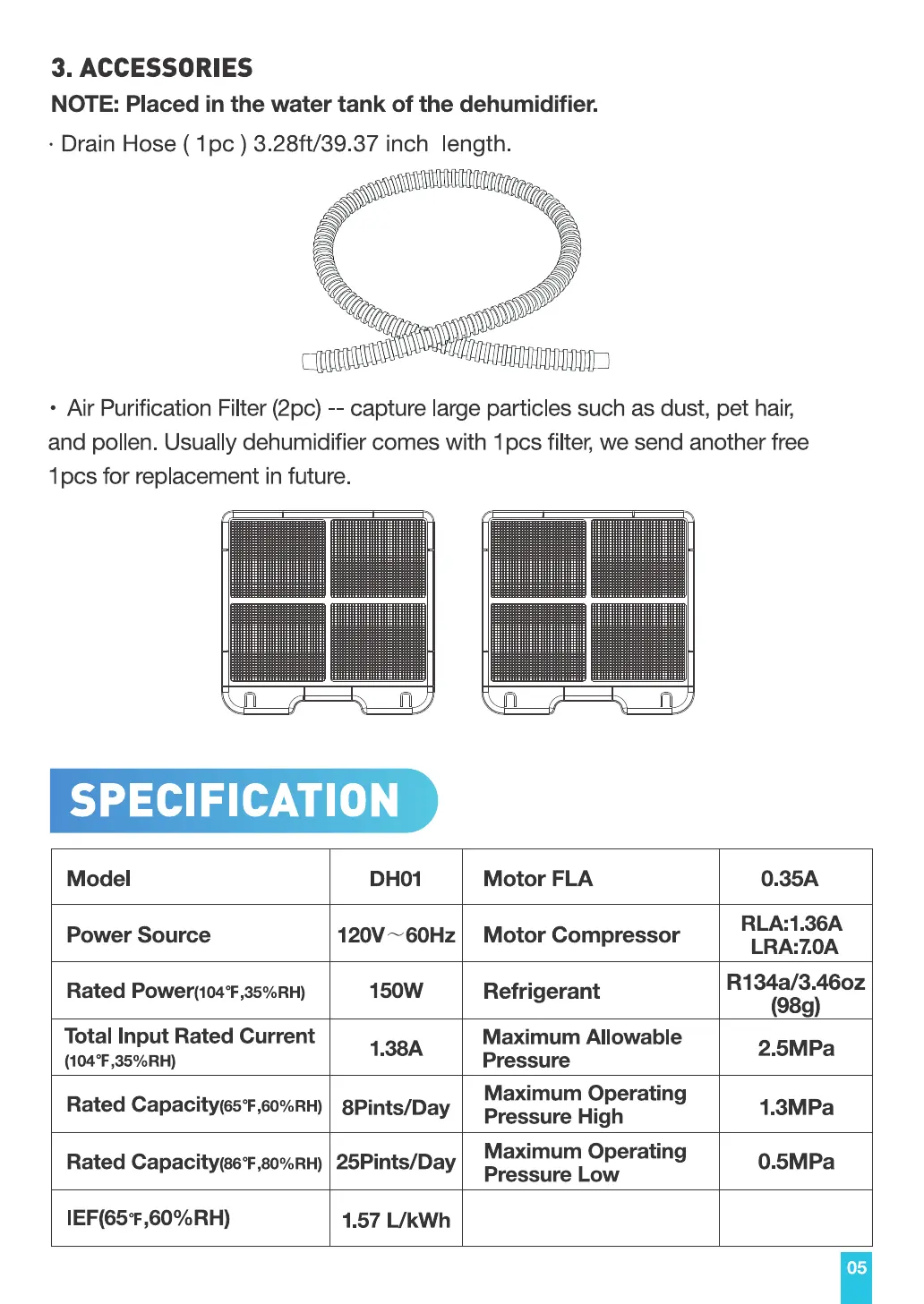 and pollen. Usually dehumidifier comes with 1pcs filter, we send another free