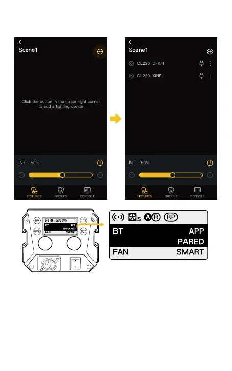 2. Open the APP and click the “ + " on the upper right, then click the scene