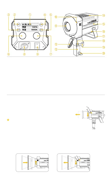 head and clip it in, turn the reector as the direction of the arrow, and the