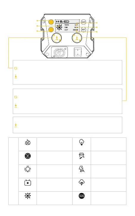Press to switch light eect: Fire → CCT Chase → Pulsing → TV →