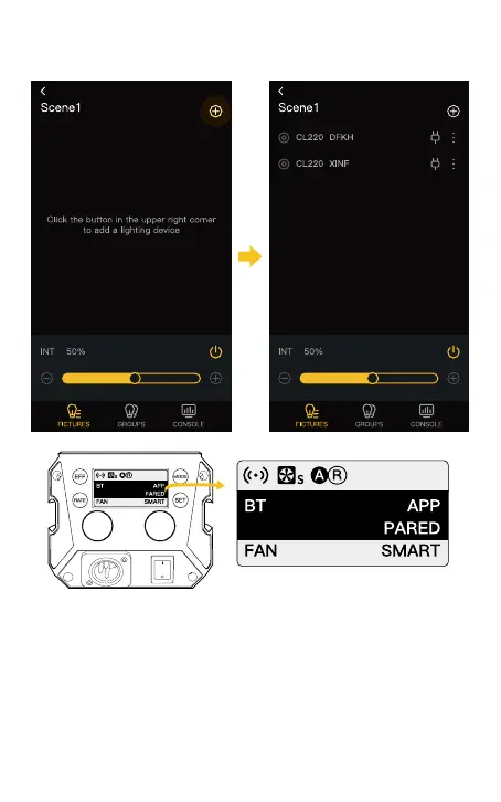2. Open the APP and click the “ + " on the upper right, then click the scene
