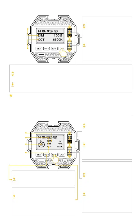 Roll the wheel upwards or downwards to adjust color temperature (CCT)