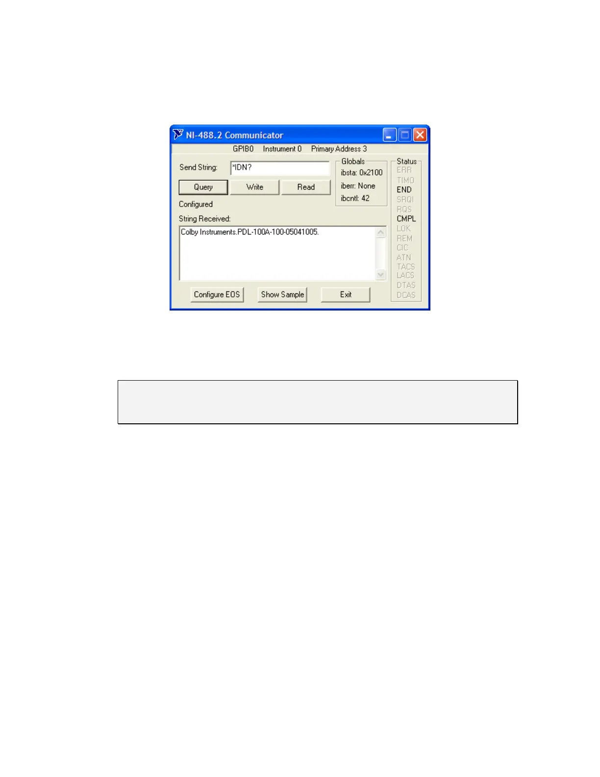 7. Click Query to send *IDN? to the PDL-100A and view the response.