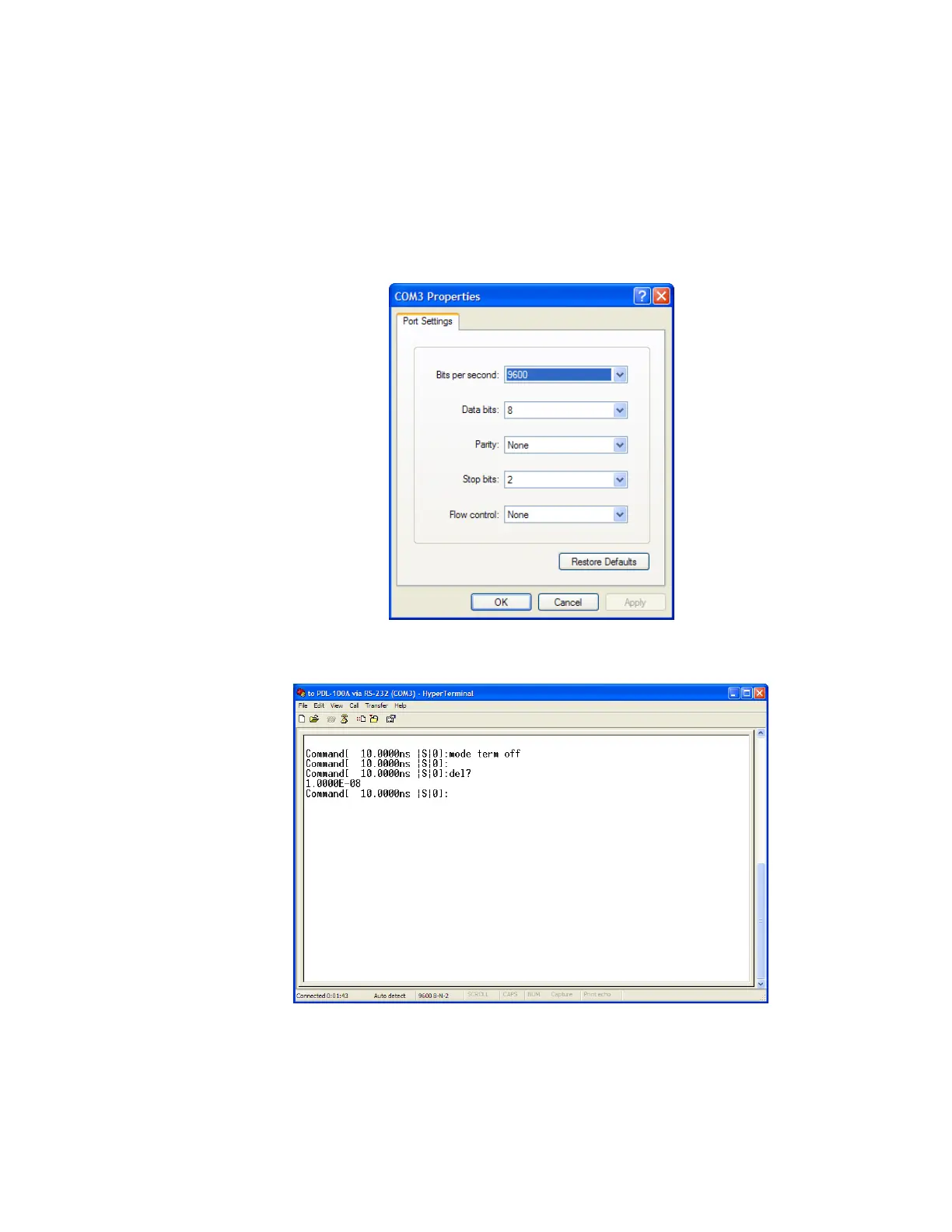 3. Select 9600 bits per second to connect to the PDL-100A.