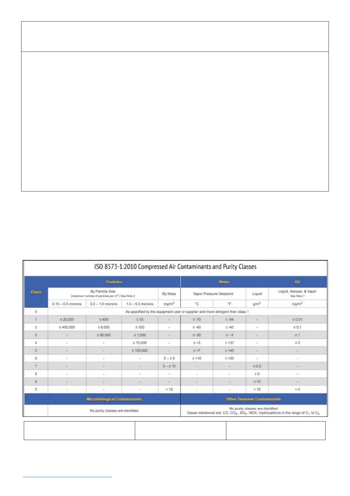 • The incoming air quality must meet the standards in the chart provided in the Required Air Quality