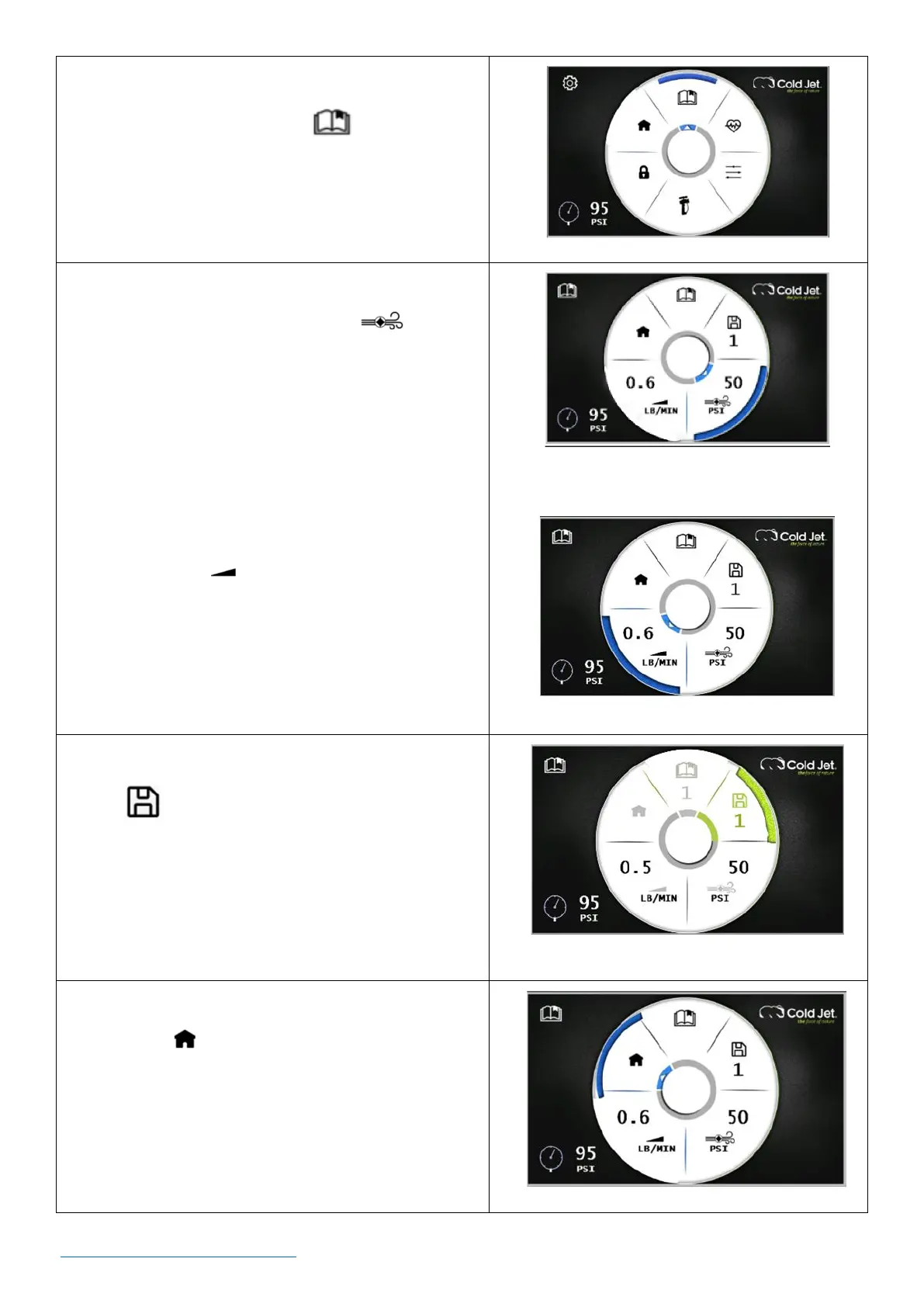 blast pressure and press the dial once to select the