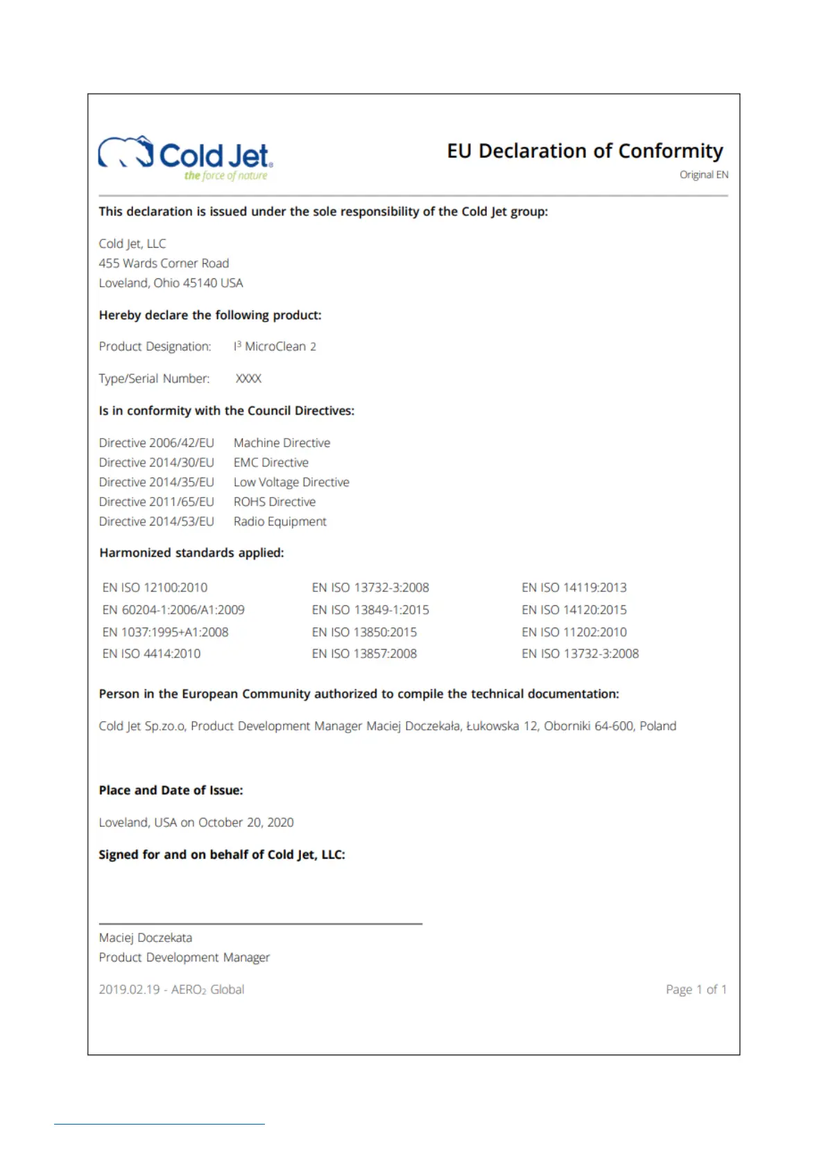 Other manuals for Cold Jet i3 MICROCLEAN 2