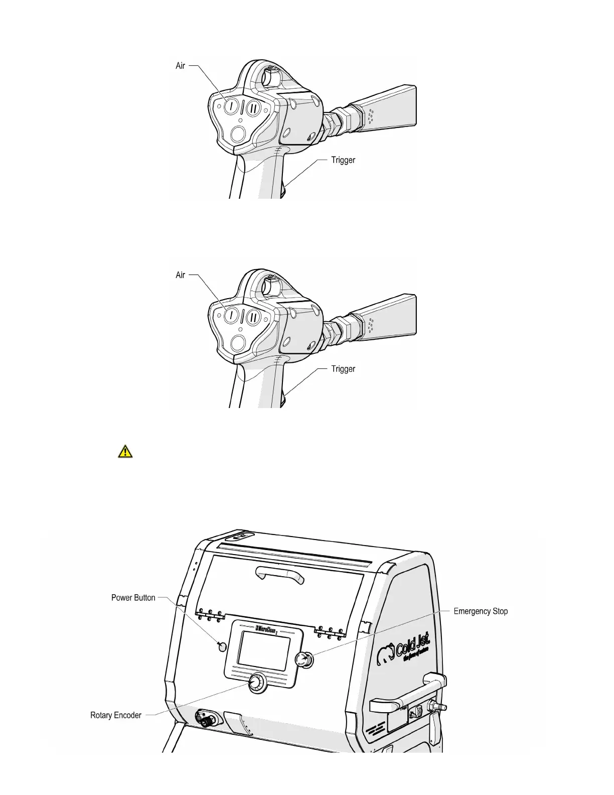 c. After blasting, press the air button (I) again to deactivate (blue light o). This should
