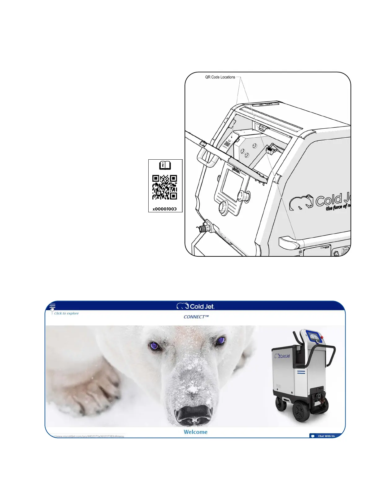 technical service contacts, service parts ordering, and a link to this machine’s Cold Jet CONNECT