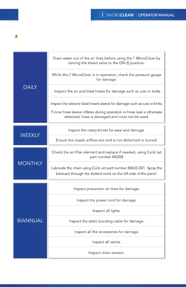 Cold Jet i3 MICROCLEAN - Maintenance; Daily Maintenance; Weekly Maintenance; Monthly Maintenance