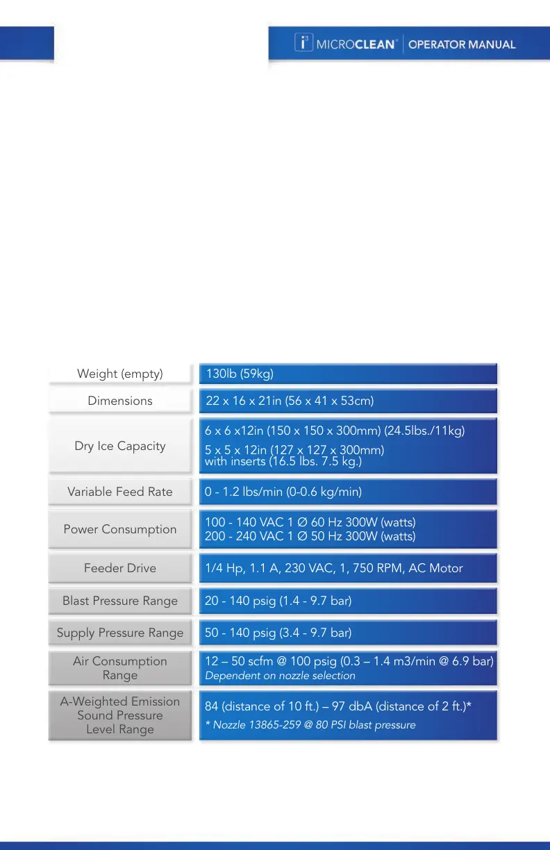 Blast Pressure Range 20 - 140 psig (1.4 - 9.7 bar)
