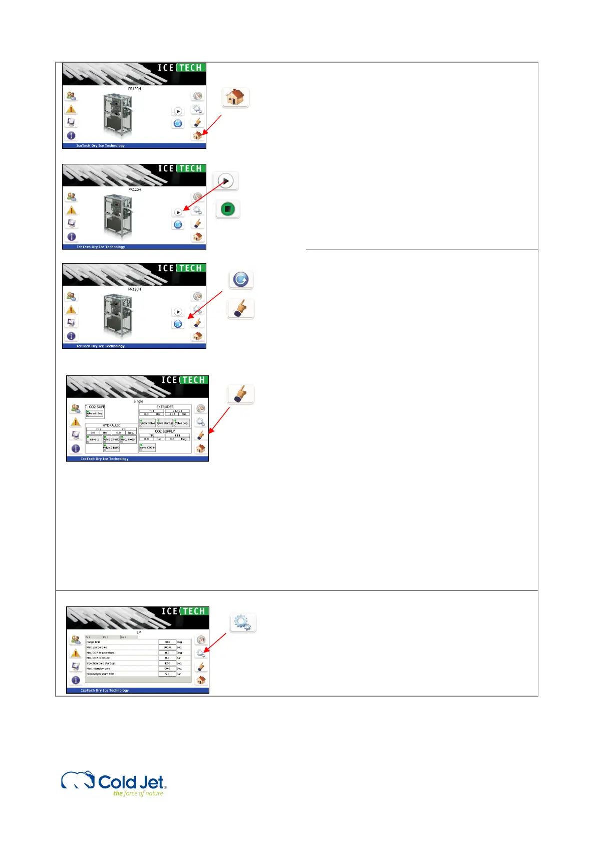 starting the hydraulic motor and pressing the arrow