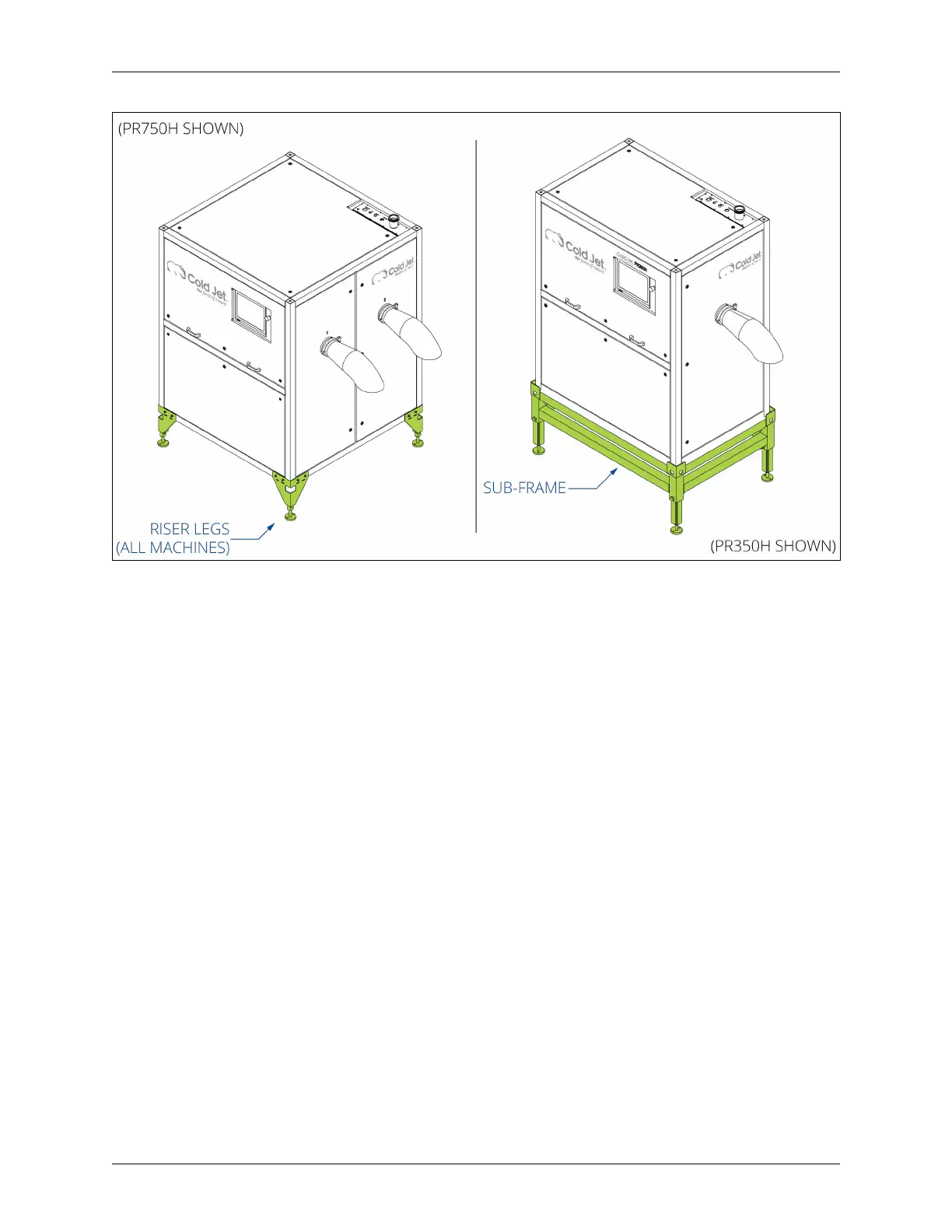 types of taller dry ice transport container/totes. The riser legs raise the pelletizer by 200 mm