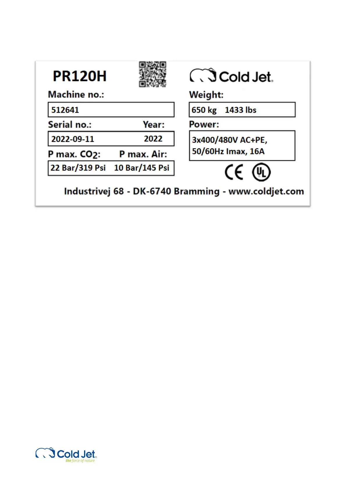 Cold Jet PR350H - Supplier Responsible for the Equipment; System Identification