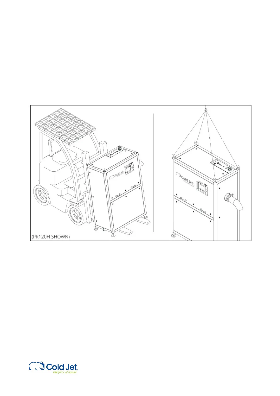 The installation of the PR750H must be carried out by a Cold Jet service technician, or by a technician approved by Cold