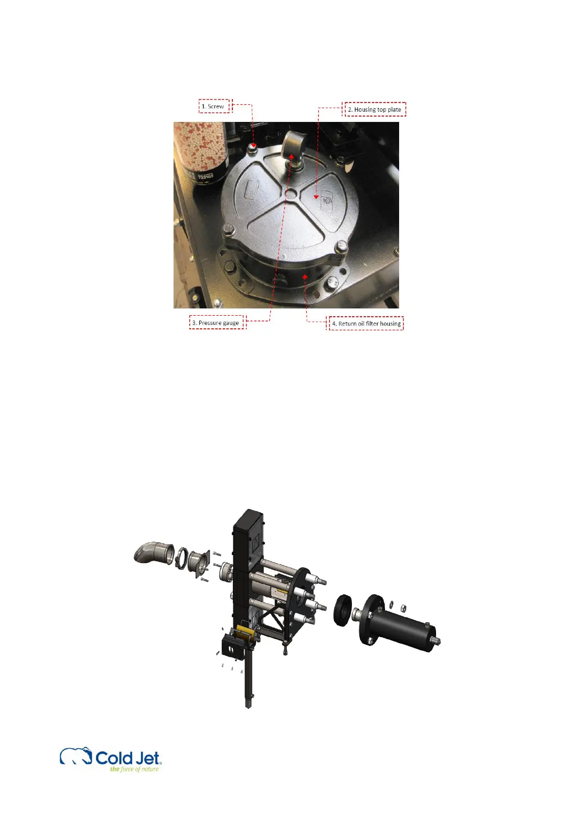 [2], gasket, filter [4] out wards. Take out the return oil filter cartridge and replace it with a new one. Be careful not to