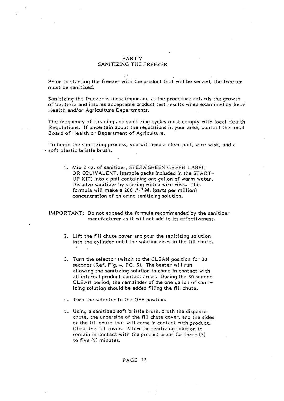 CLEAN period, the remainder of the one gallon of sanit-
