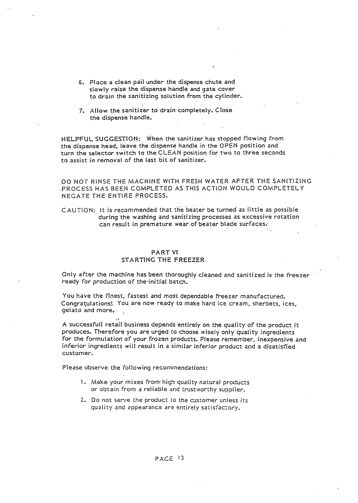 NOT RINSE THE idACHINE WITH FRESH WATER AFTER THE SANITIZING