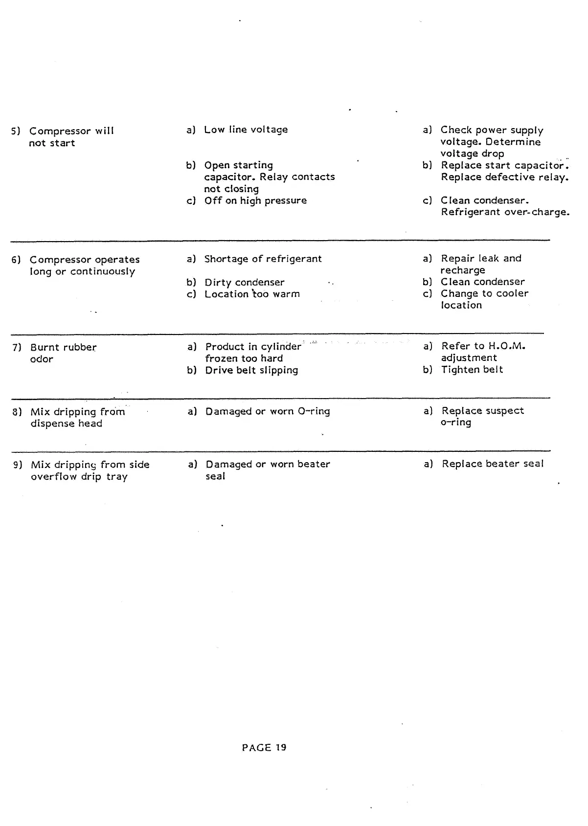 Mix dripping. from side a) Damaged or worn beater a) Replace beater seal