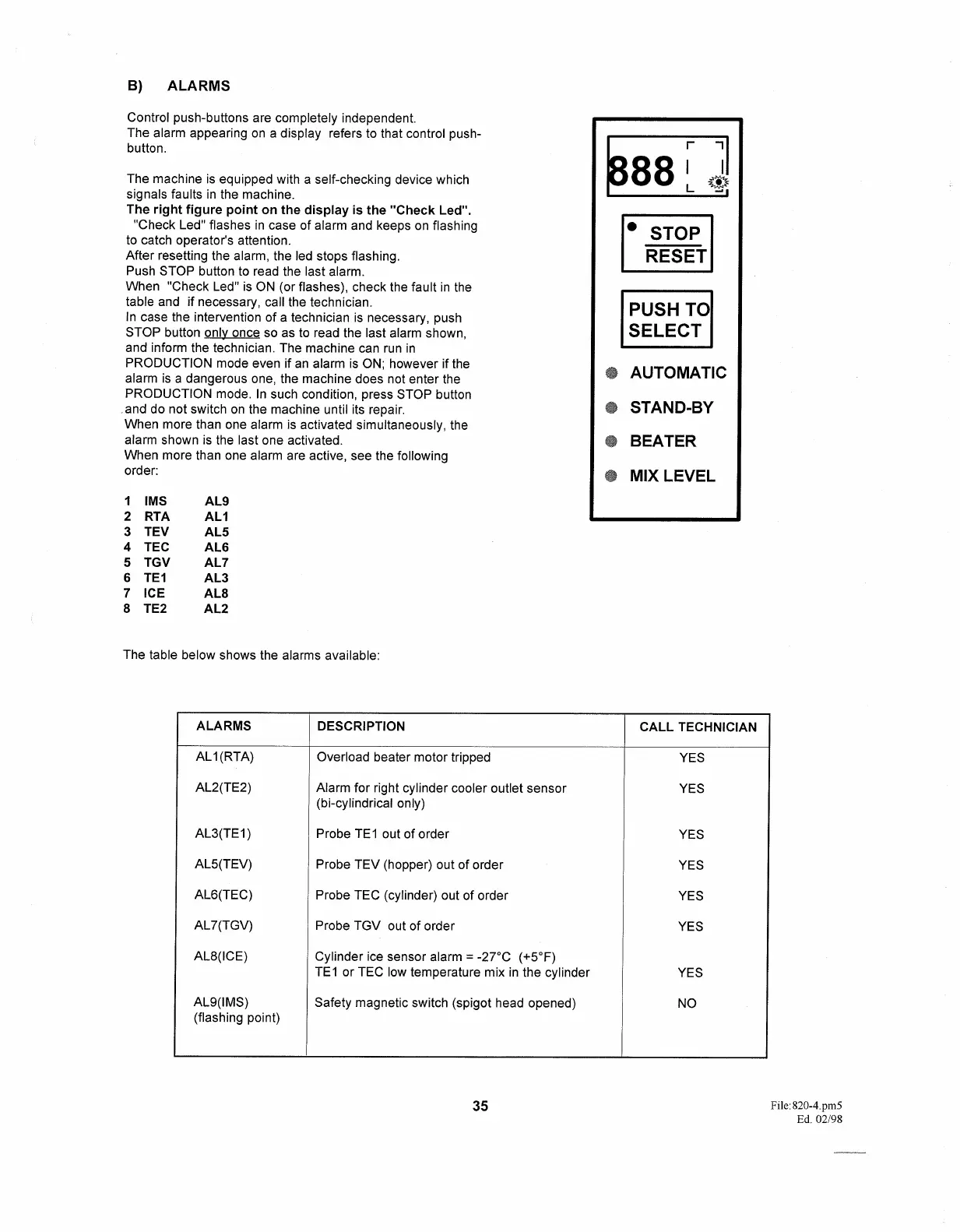 Coldelite UF 820 E TRONIC - Alarm System and Error Codes