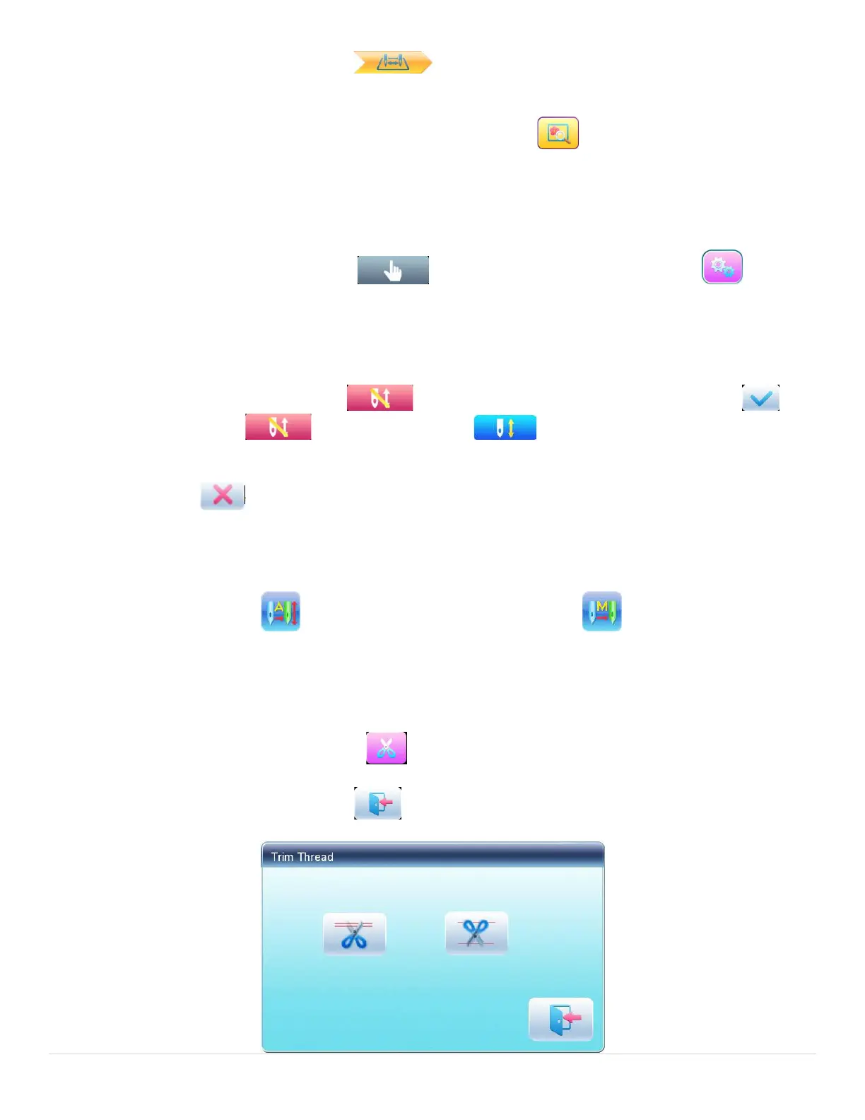 can press “Trim Upper&Bobbin Thread” to trim threads, or click “Trim Bobbin Thread” to trim