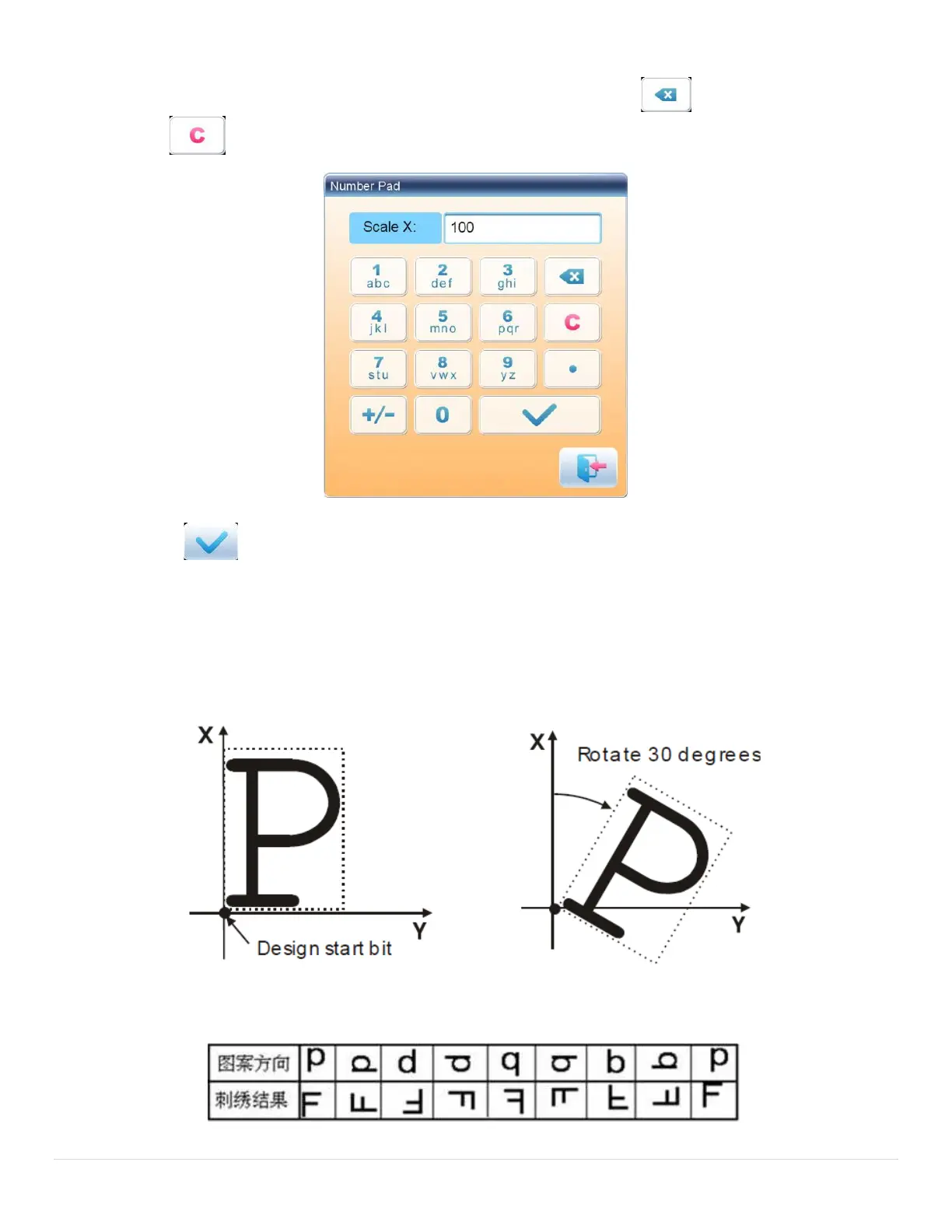 User can press number pad to modify the scaling rate at X direction, press to cancel the last input