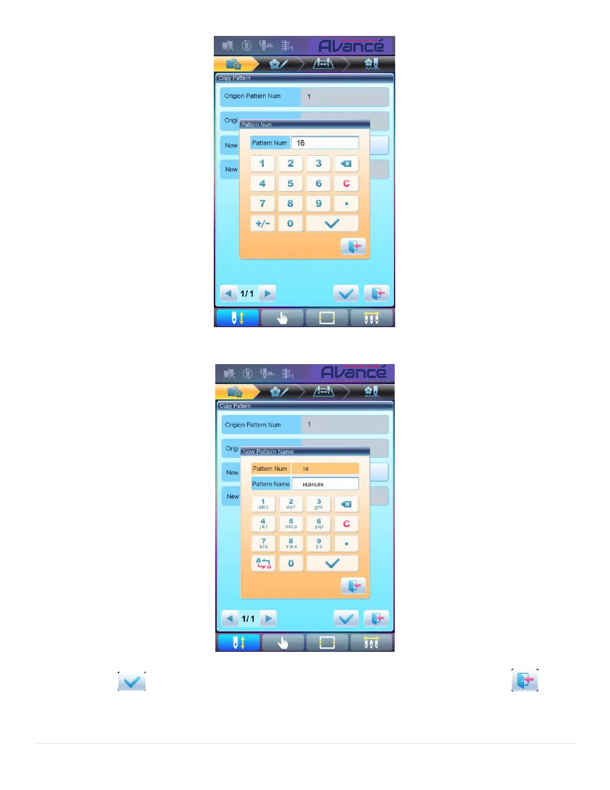 7. Press to copy the pattern and return to pattern operation selection interface. Press to
