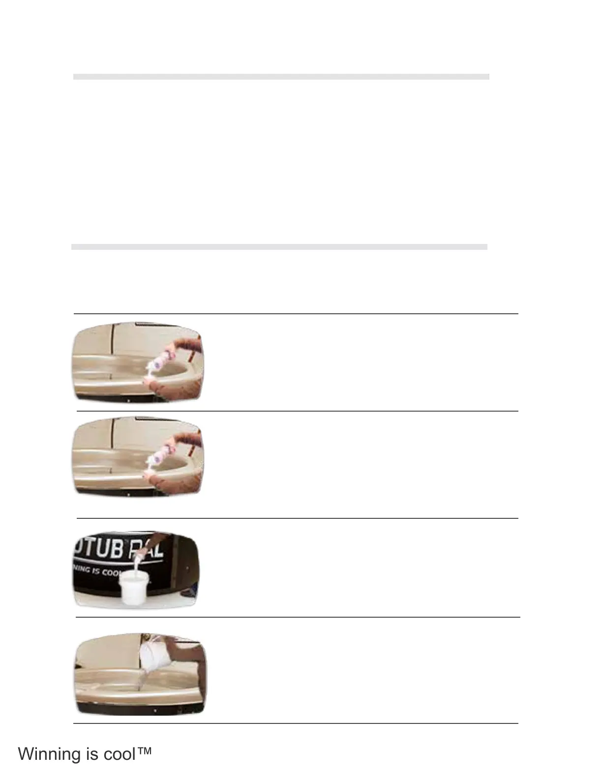 chemical in an uncontaminated container of hot water before adding to the Tub water.