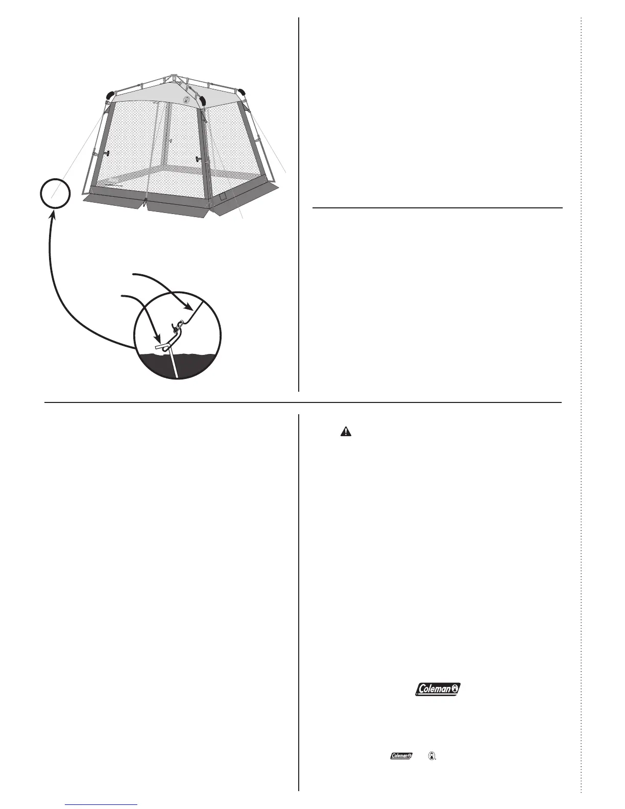 • Do not leave your screenhouse set-up for weeks at a time. Be