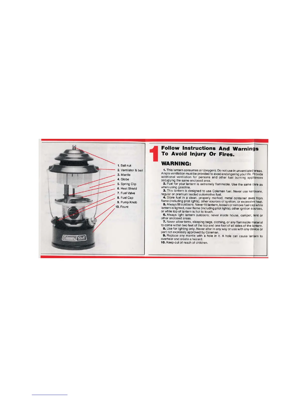 Coleman 288A700 - Safety Instructions and Warnings; General Warnings and Precautions