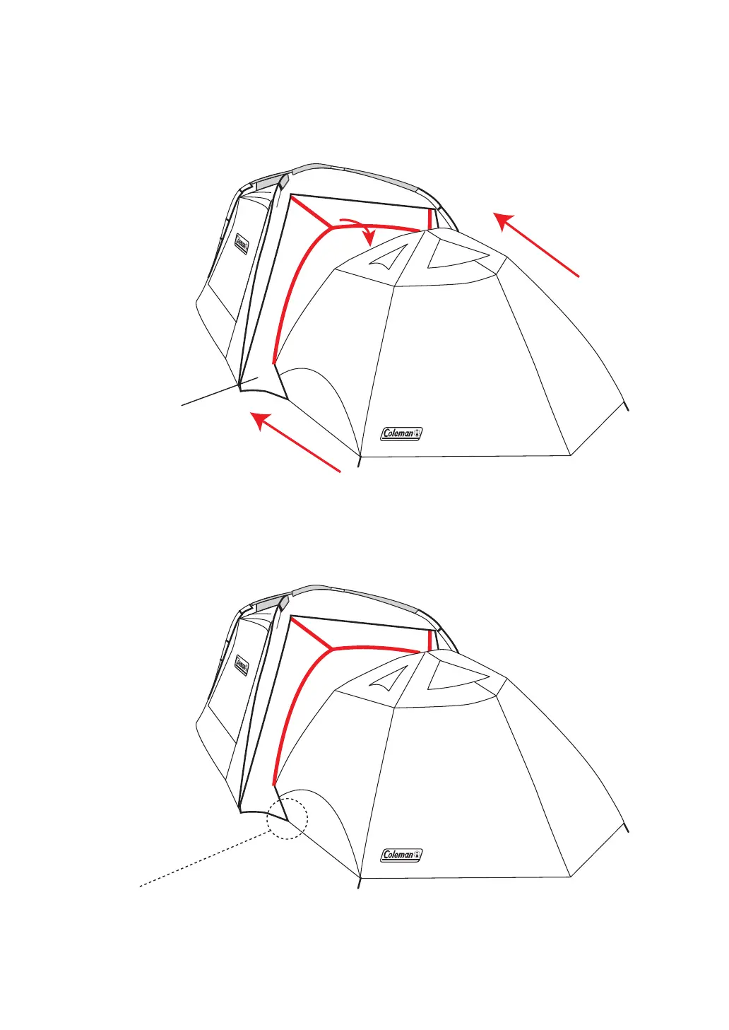 텐트 프런트 폴대에 조인트 플랩이 제대로 덮히도록 조정해 주십시오.