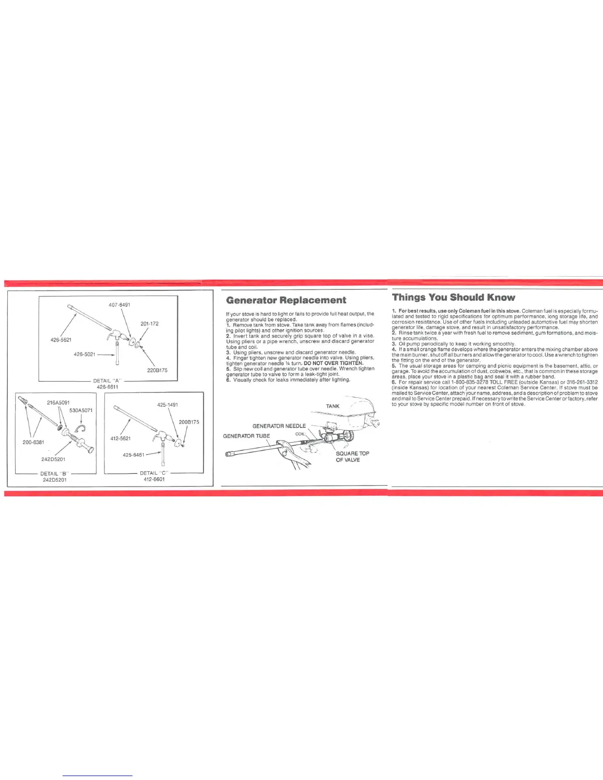 Coleman 413H - Generator Replacement and Stove Care; Generator Replacement Procedure; Important Stove Usage Tips