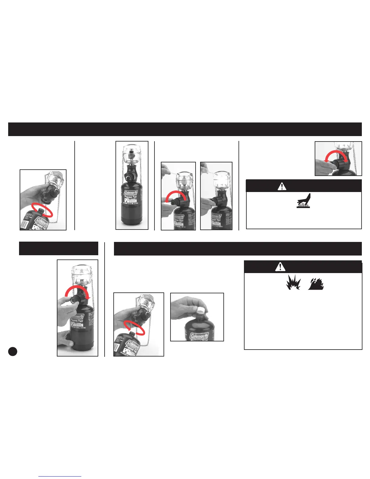■ Remove propane cylinder from lantern.