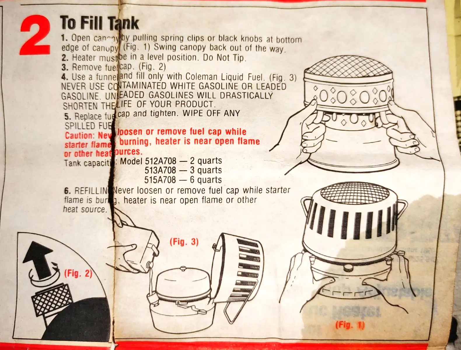 Coleman 513A708 - Coleman Heater Operation Procedures; Filling the Fuel Tank