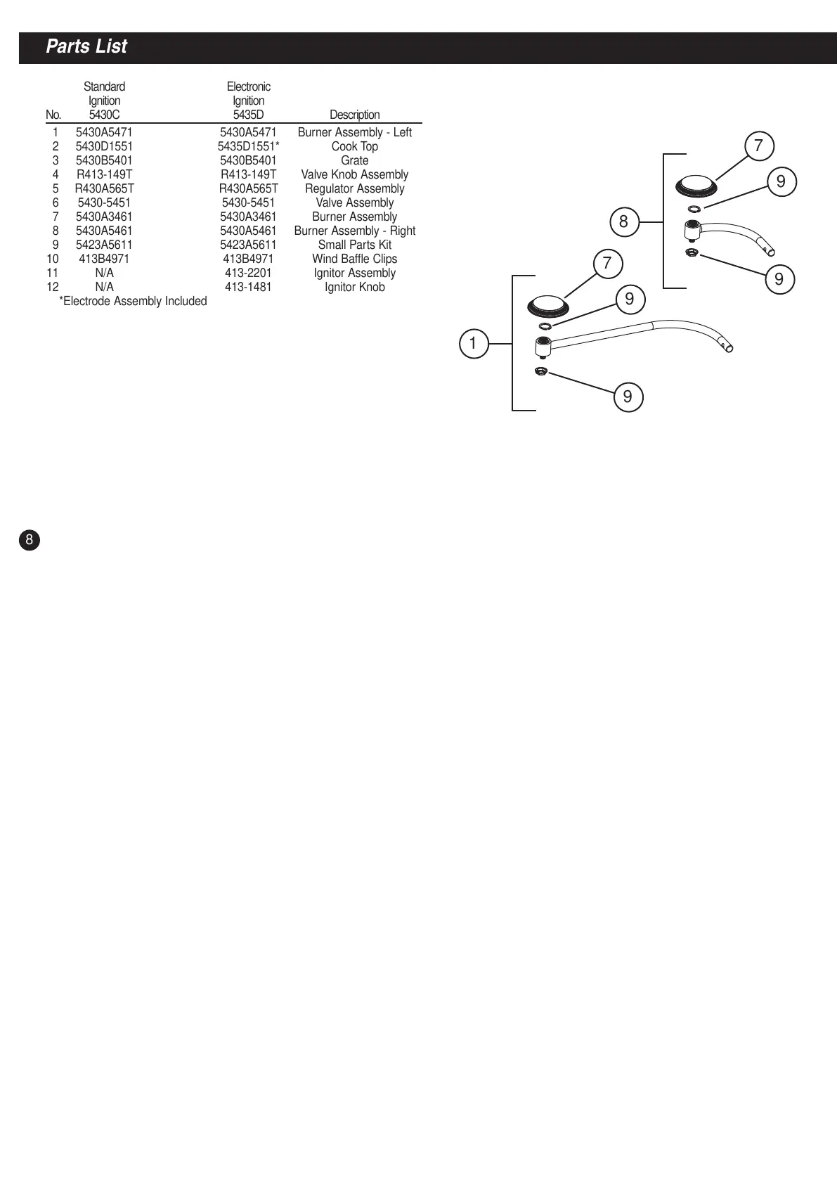 8 5430A5461 5430A5461 Burner Assembly - Right