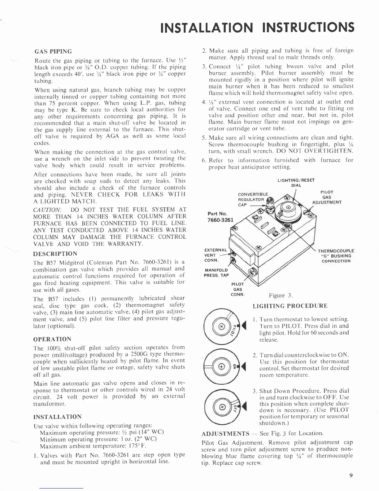 Coleman 7600 - Installation Instructions; Gas Piping; Lighting Procedure