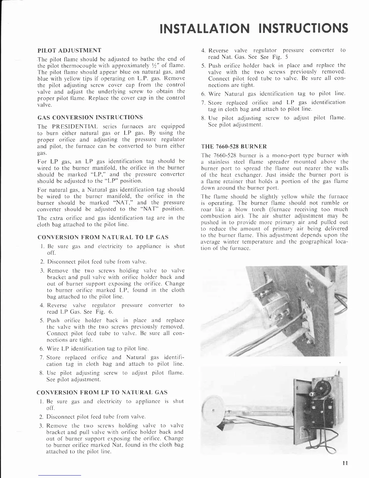 Coleman 7600 - Pilot Adjustment; Gas Conversion Instructions; Conversion from Natural to LP Gas; Conversion from LP to Natural Gas