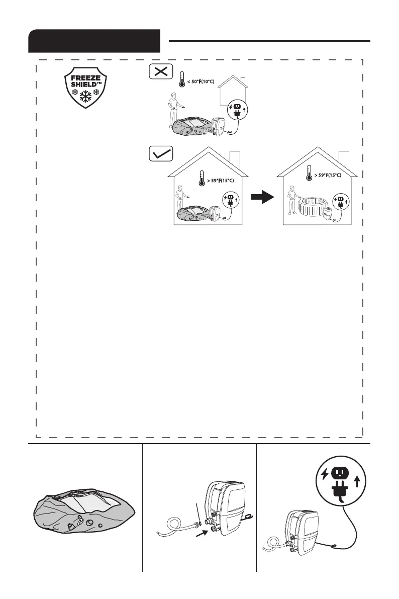 Important: If the Freeze Shield™ system isn’t working, alarms will pop up on the spa.