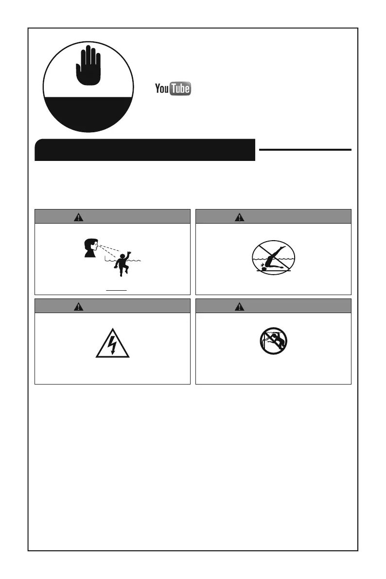 • Prior to use of the pool, the installer shall affix all no diving signs and safety signs in accordance with installation instructions so they can be easily