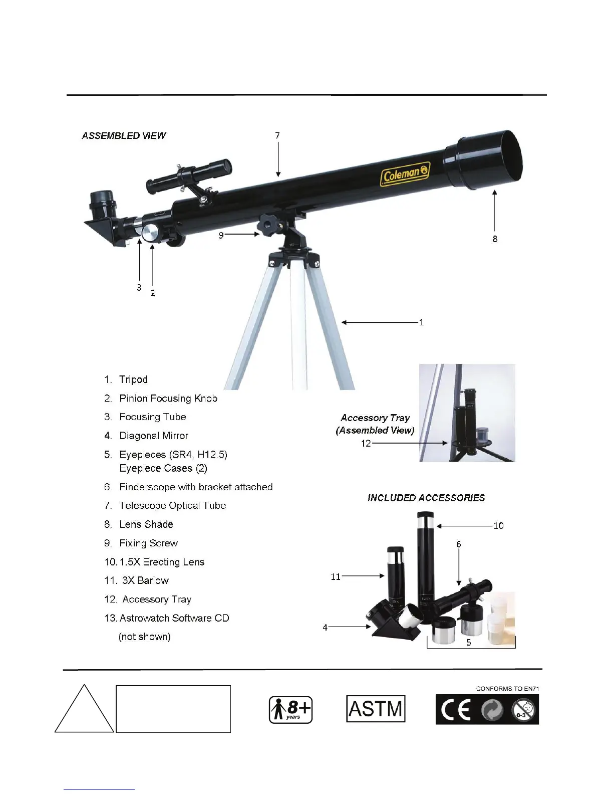 PARTS LIST FOR AT50 Telescope: